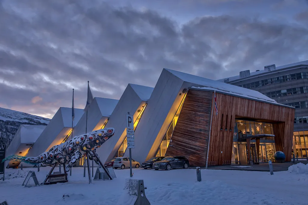 Arctic Cathedral is an outstanding piece of architectural brilliance that is standing in Tromsdalen Valley. This cathedral has renowned as the Cathedral of the Arctic Sea and is now become the landmark location of Tromsø. This structure is featured by a gleaming white and triangular architecture that can be easily seen from a plane.